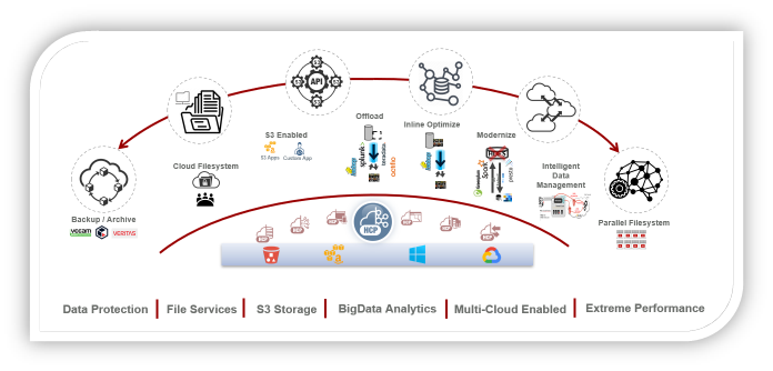 From there, the same customers begin to expand their use of an S3 cloud platform to file services, adopting cloud filesystems for workload sharing as an emerging use case. During this chapter, they begin to offer modern hybrid cloud capabilities and cost-effectively leverage their existing infrastructure investments. They take advantage of minimizing latency and overcoming the consequences of on-premises data gravity. The built-in Hybrid cloud capabilities enable them to deliver file services more efficiently to remote and branch offices, accelerating ingest performance for edge IoT devices and applications for better insight and data analysis.